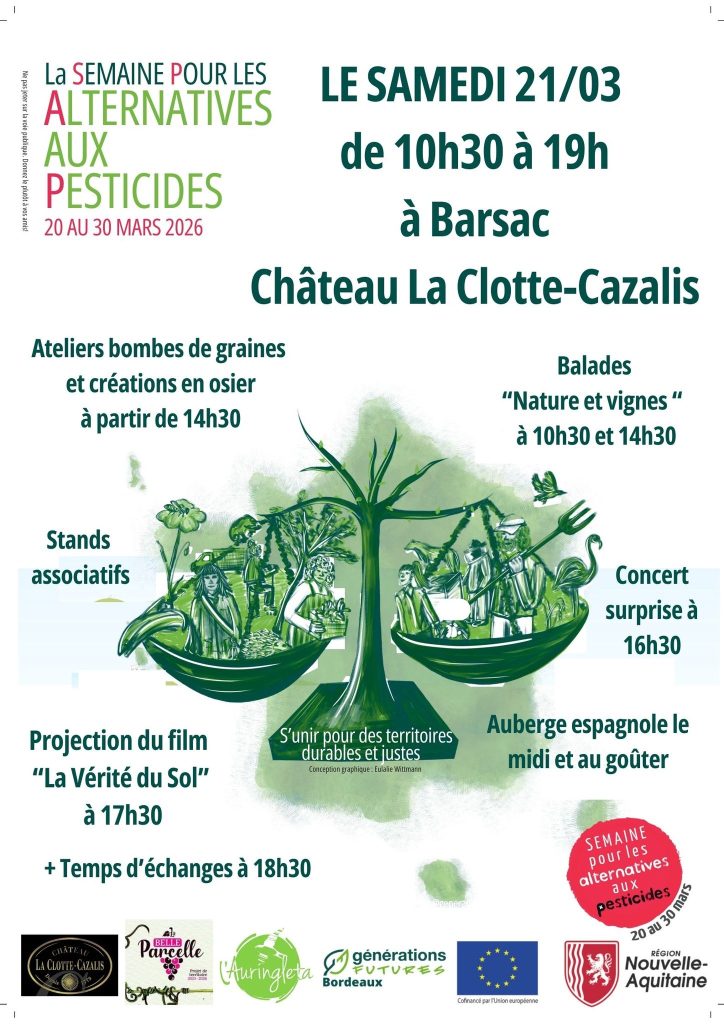 Dans le cadre de la semaine pour les alternatives aux pesticides venez fêter le printemps sur La Belle Parcelle à Barsac le samedi 21 mars au Château La Clotte-Cazalis.