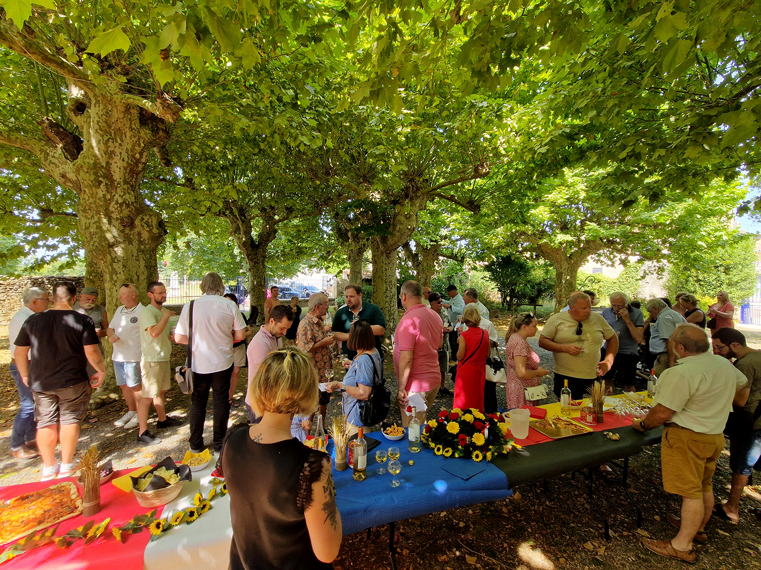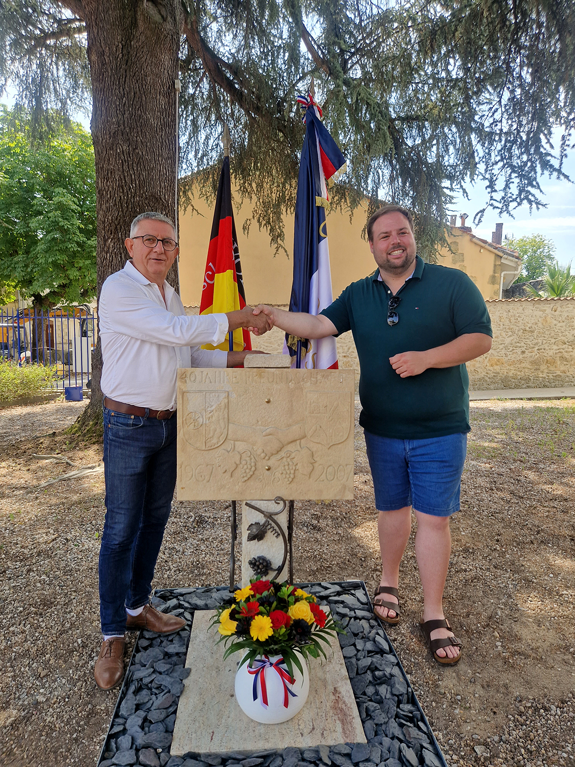 Du 4 au 8 juillet, nos amis allemands ont passé la frontière pour venir à notre rencontre. Ils étaient chaleureusement accueillis samedi matin autour d’un apéritif convivial après avoir inauguré la plaque installée sur le parvis de la mairie en l’honneur de cette longue et belle amitié qui dure depuis presque 60 ans aujourd’hui.